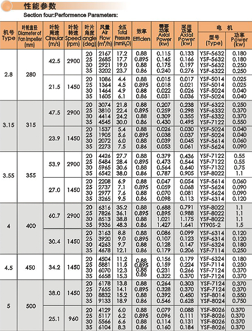 | T35-11系列轴流风机是在T30-11的基础上改进设计的新型风机,主要优点是结构更合理,性能有了较大提高。本系列风机叶轮直径由小到大有三十个规格,每一规格风机的叶片都为4片,叶片角度有15o、20o、25o、30o、35o五种,参数范围广,风量826~67892m3/h,风压3.9~48.3mmH2O(详见参数表)。 本系列风机适用于输送非易燃易爆无腐蚀无显著粉尘的气体,环境温度不得超过60℃,广泛应用于一般工厂、仓库、办公室、住宅内通风换气等场合。 防腐轴流风机(FT35-11型)是采用防腐材料外涂环氧漆加工而成的T35-11型通风机,电机采用特种防腐电机,用于输送有腐蚀性的气体。 防爆轴流风机(BT35-11型)是T35-11的派生产品,用于输送易燃易爆的气体,叶轮用铝合金加工而成,以防在运转中引起火花,电机配用防爆型电机。 | ||||||||