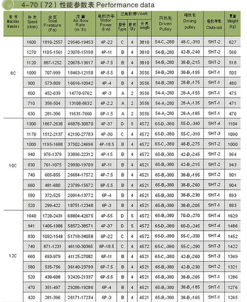| 4-79、4-70(72)型离心风机是引进日本ミツヤ公司的先进技术并通过本公司工程技术中心进行吸收、消化、创新研制而成,其性能指标优于我国通用的4-79、4-72型离心通风机。该风机噪声较老式风机低5~8dB(A),外形尺寸也较老式风机紧凑,效率及比A声级优于机械工业部制订的标准。4-70型通风机共15种机号,风量930~154000m3/h,风压170~2950Pa;4-79型通风机共20种机号,风量1100~438000 m3/h,风压230~3320Pa,用户可根据不同参数选择。 本系列风机广泛应用于各类大中型工厂和高级民用建筑、大型广场输入和输出气体的室内换气通风。如客户有特殊要求,本公司则可以根据用途不同,选择不同材料制作成防爆、防腐、耐高温型风机,以满足广大用户的需要。 该类风机因效率高、噪声低、运行可靠而畅销全国各省市,还出口世界各地。 |